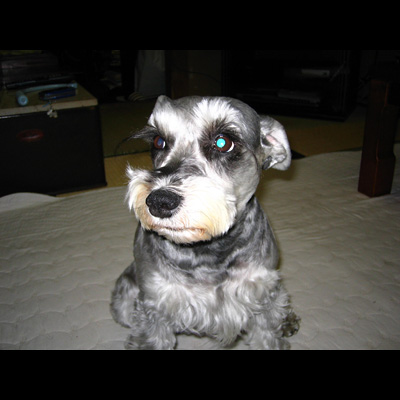 さくら(♀7歳 ミニュチュア シュナウザー)です。ご近所の方とも仲良し。まつげがすご~く長く、初めてお会いする方でも話が弾みます。